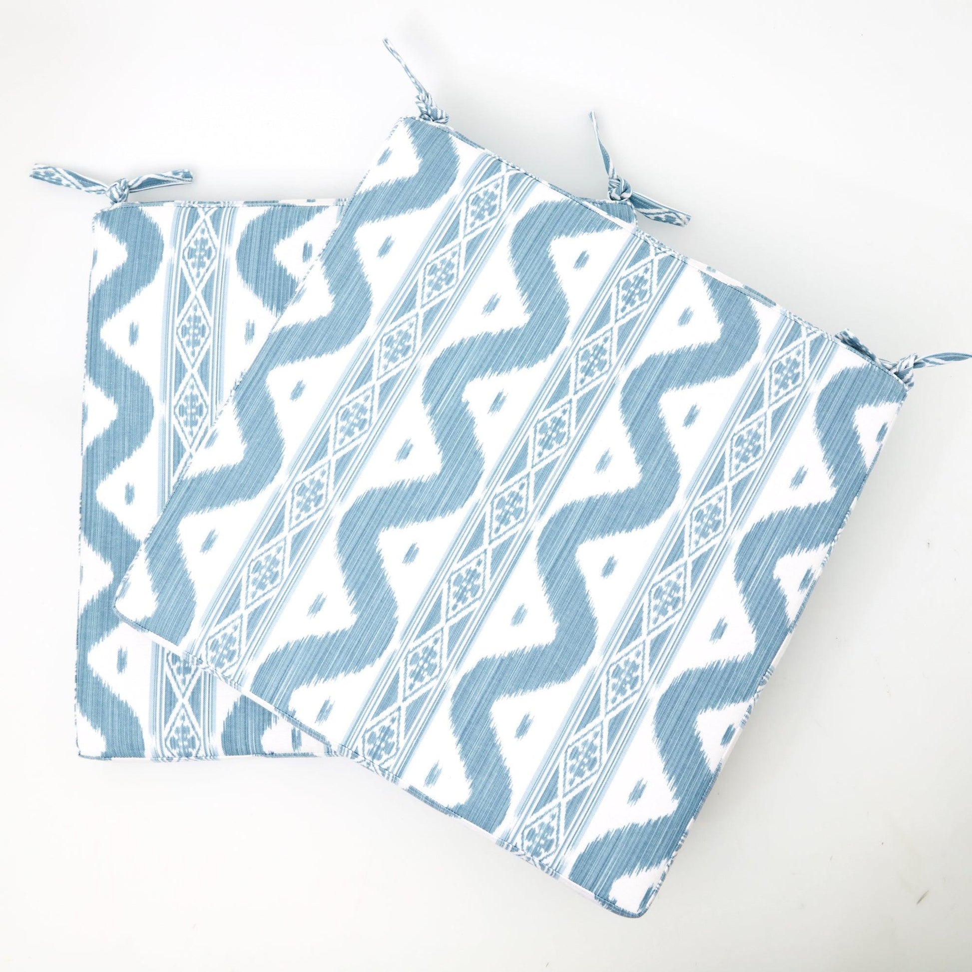 This pretty square seat pad cushion features our exclusive Blue Ikat fabric.