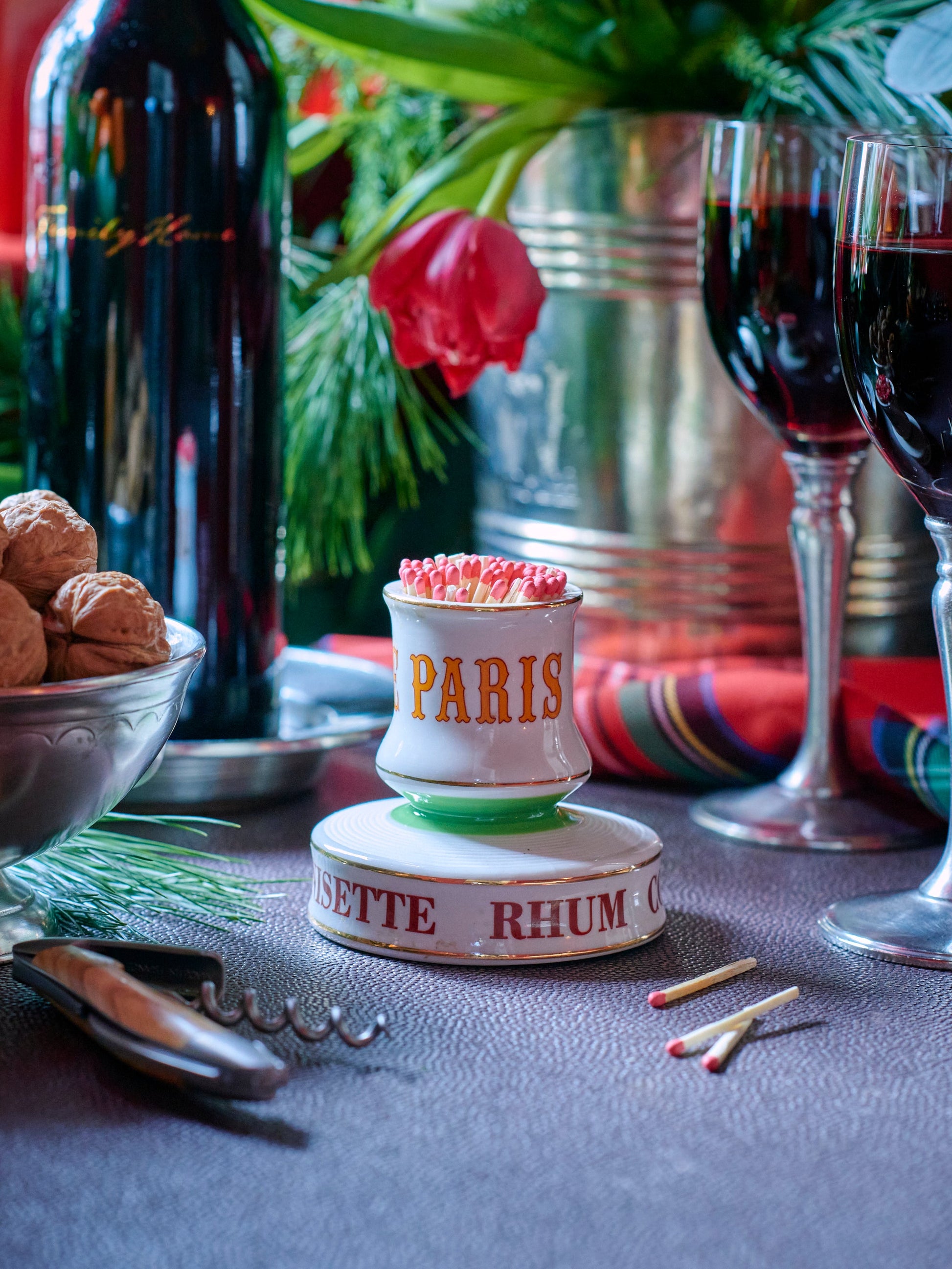 A handmade reproduction of the advertisement style of French match striker found during the late 19th and early 20th century in bistros and cafes,