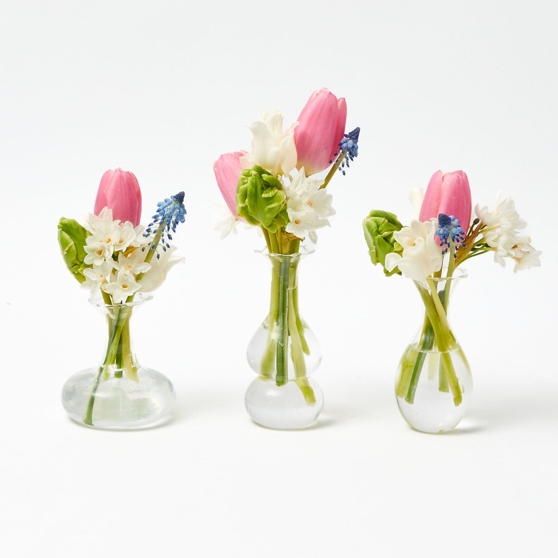 Our dainty Esme Bud Vases come in a set of three charming clear vases to show off your favourite blooms.