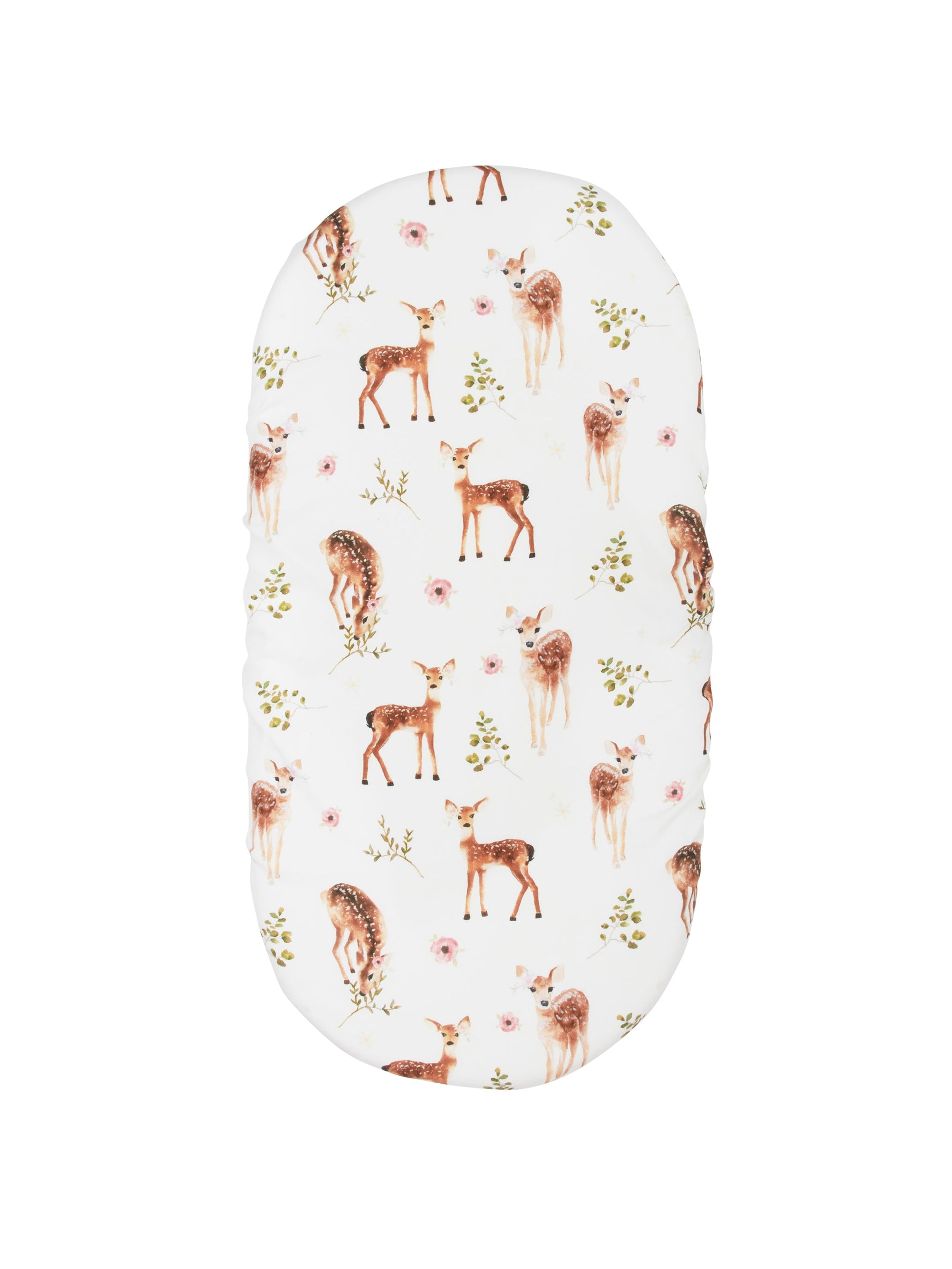 Soft and breathable, this sweet basket sheet has an all over fawn and flowers pattern.