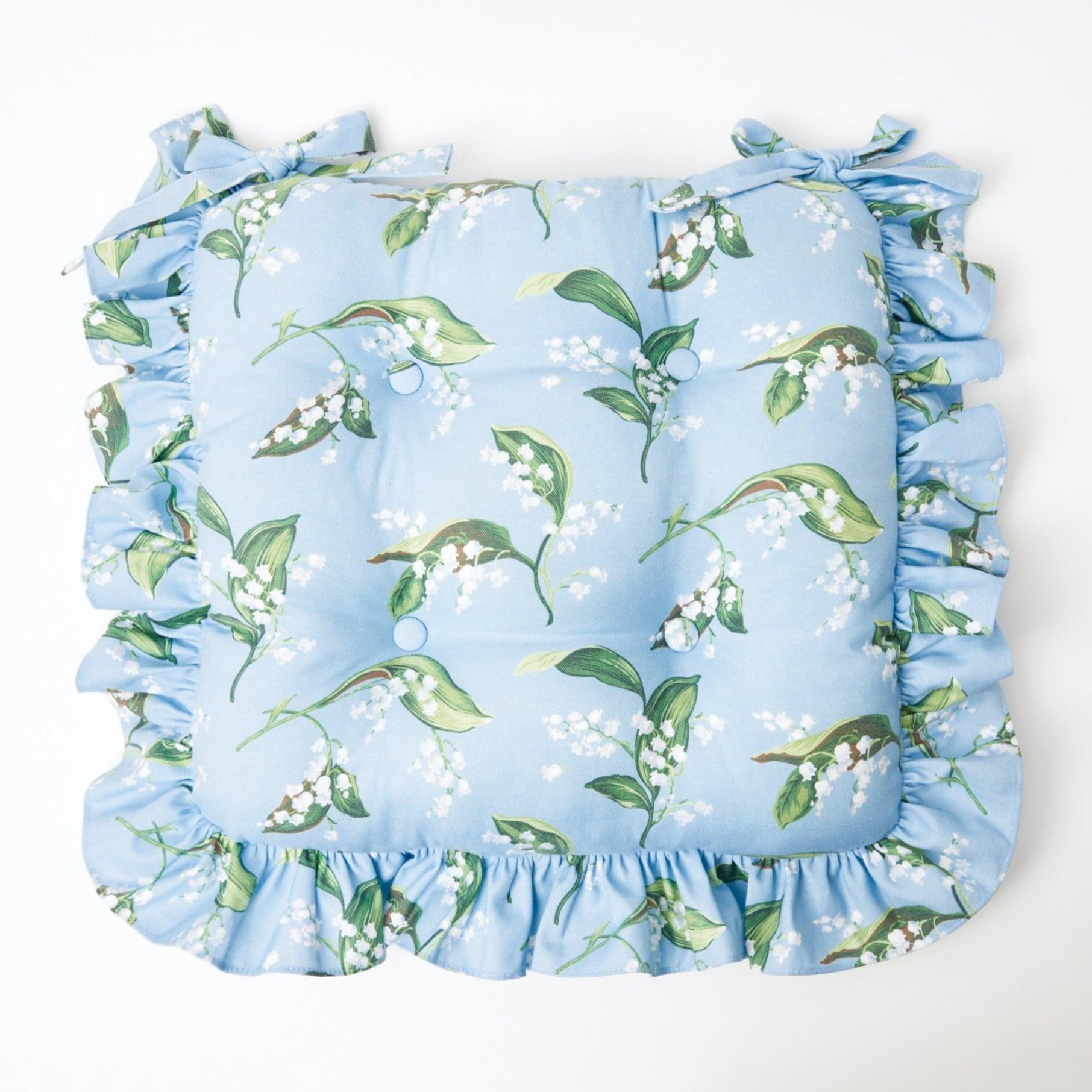 This pretty frilled seat pad cushion features our exclusive Lily Of The Valley fabric.