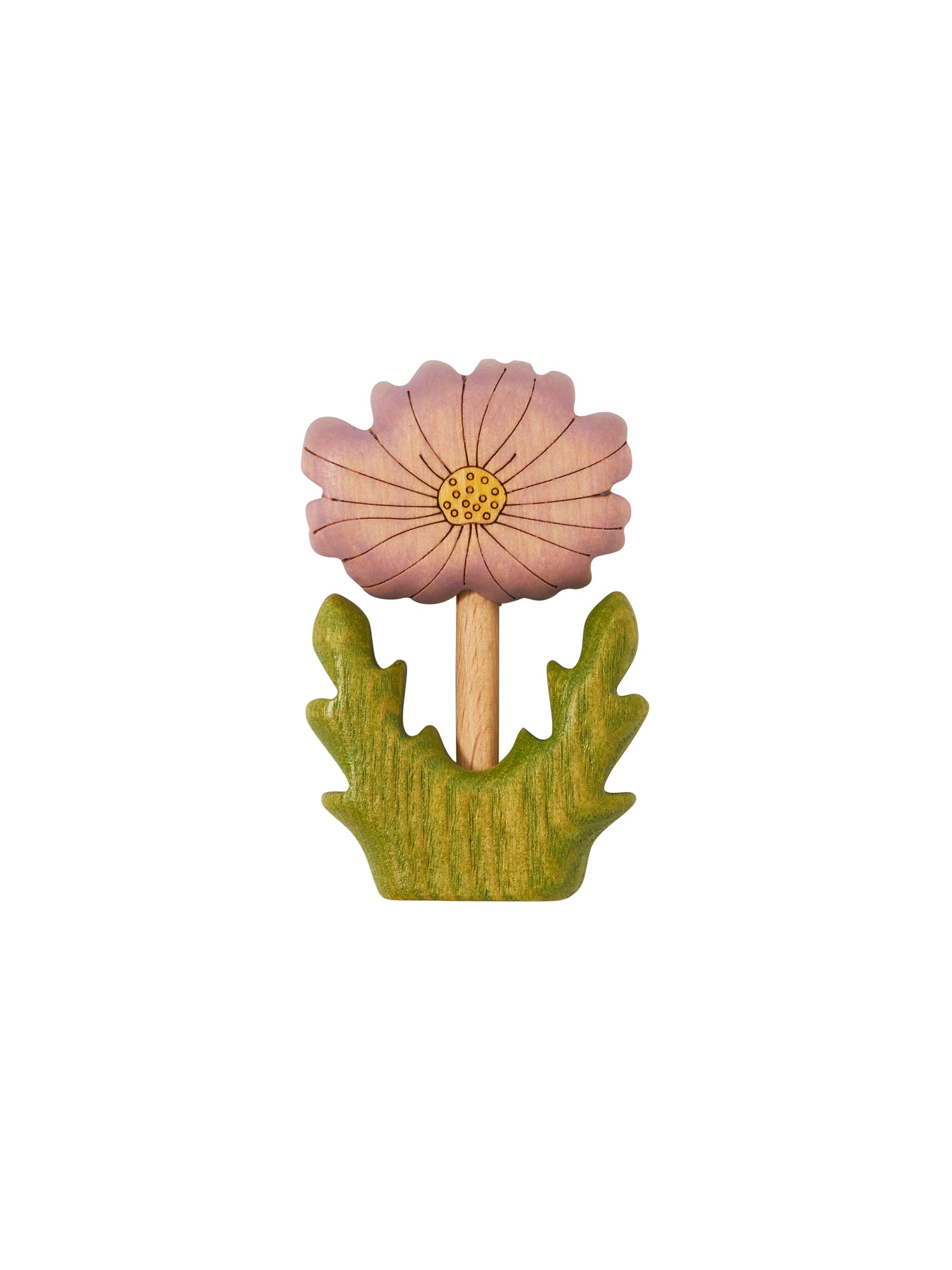 A hand carved birch wood hand painted astra flower collectible that adds a bit of exploding star shaped blooms to your wooden garden.