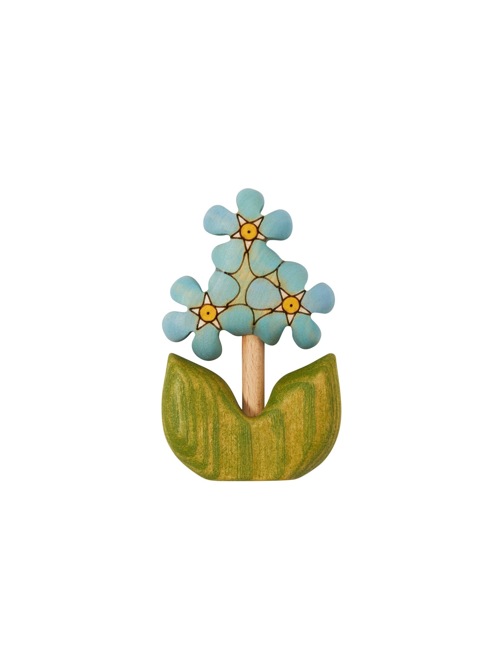 A collectible hand painted and artisan carved birch wood blue forget-me-not flower.