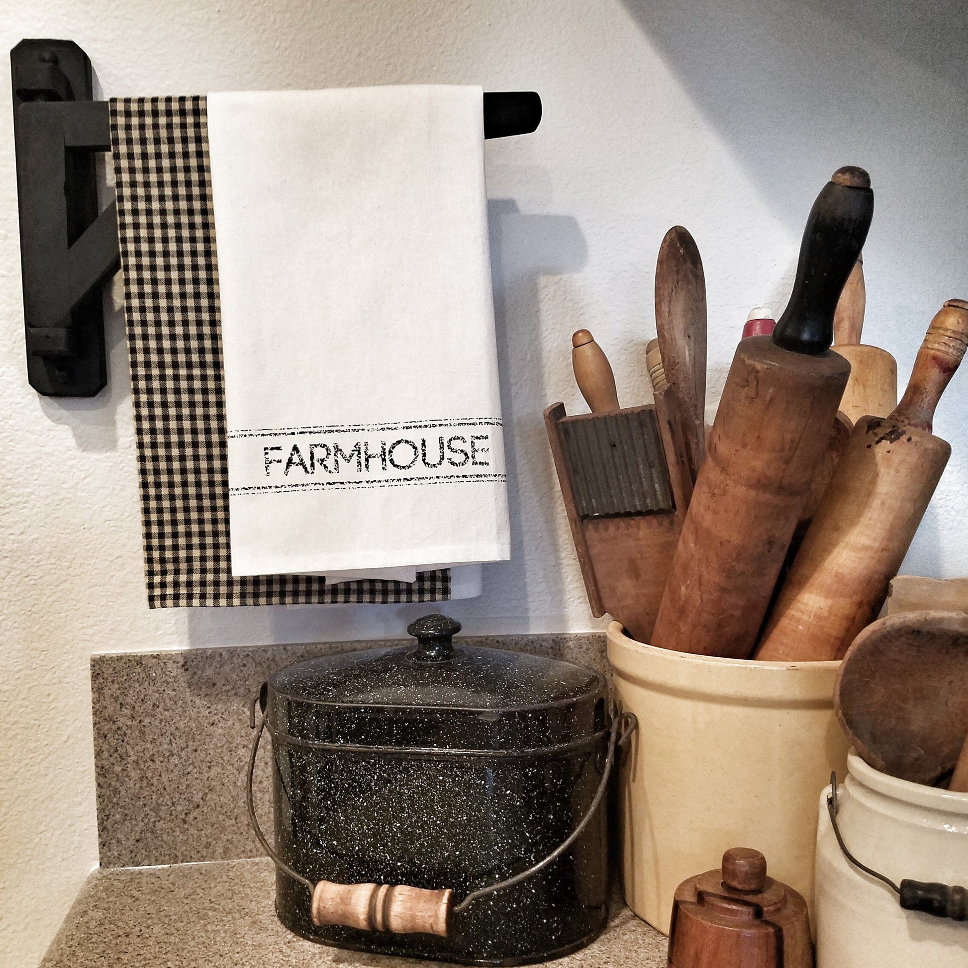 Looking for a unique way to display your tea towels? Our Handmade Black Wood Tea Towel Crane is constructed from 100% wood and is handcrafted in California by Cetina Country Cottage. This beautiful wall accessory measures 14.75" long and 10" high and has a black finish. Need tea towels to display on this rustic rack? Check out the full collection of tea towels we have to offer right here at Primitive Star Quilt Shop!