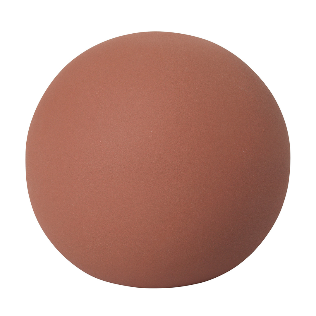 Style the Globe Sculpture as a standalone statement piece or alongside other sculptures from the Kristin Dam Collection. This sculpture is made of terracotta with red englobe.