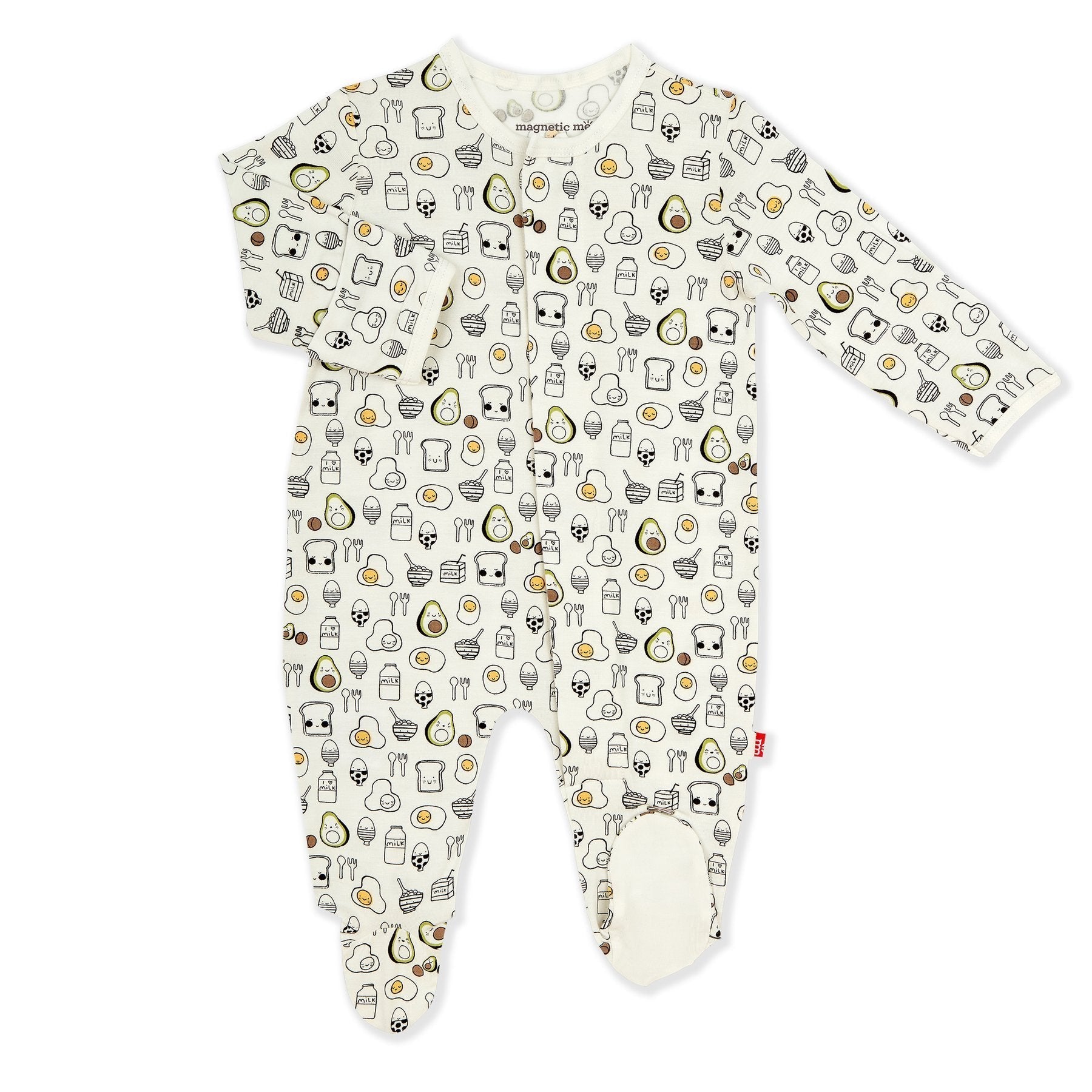 A soft, stylish all-day and all-night wardrobe staple with smart magnetic fasteners that makes changing time painless. With our no over-the-head design, simply open the outfit, insert baby, and BOOM, DONE! - the footie practically closes itself. Machine wash as directed.